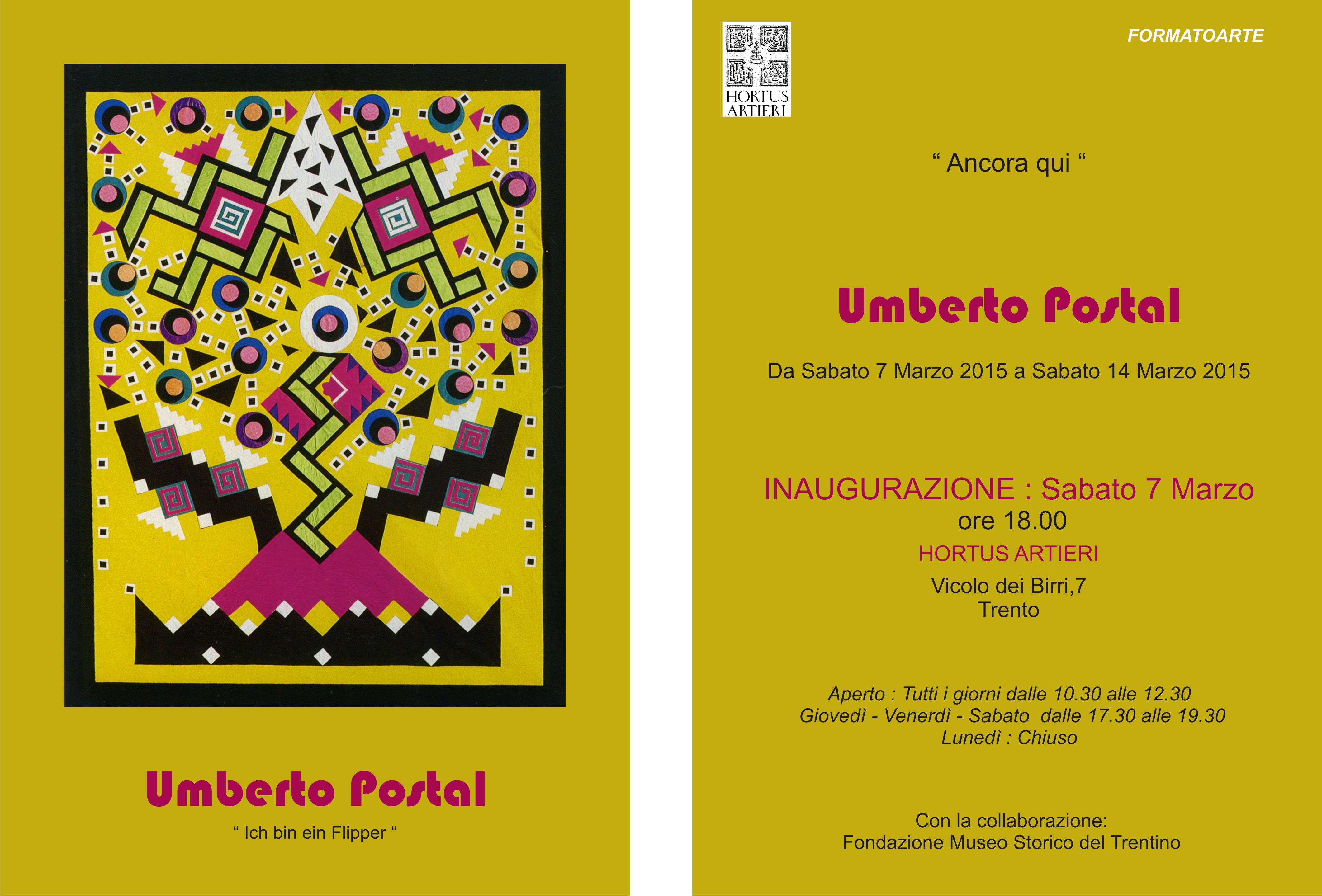 L’artista Umberto Postal (1949-2011) è stato uno dei pochi artisti trentini di fama europea . Artista poliedrico si è dedicato non solo alla pittura ma anche all’arazzo, alla fotografia, alle video-istallazioni, alle performance. Le sue esperienze artistiche sono sempre state legate alla pop art