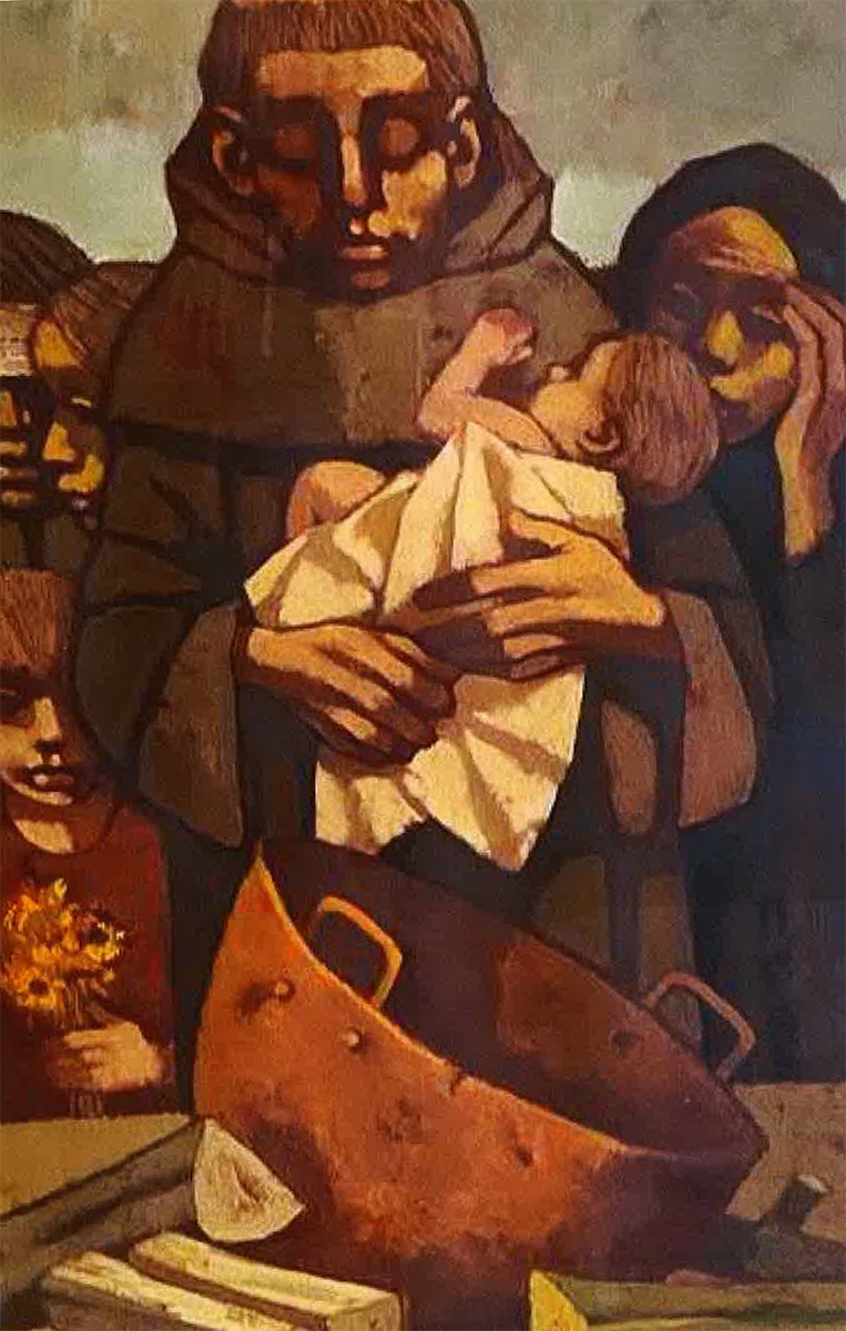 Segnato dall'esperienza della guerra e dallo strascico di miseria e desolazione che lasciò dietro di sé soprattutto nelle campagne, l’artista, maturò una concezione della pittura come testimonianza, come denuncia, come sommessa celebrazione della fatica, del sacrificio, del dolore.