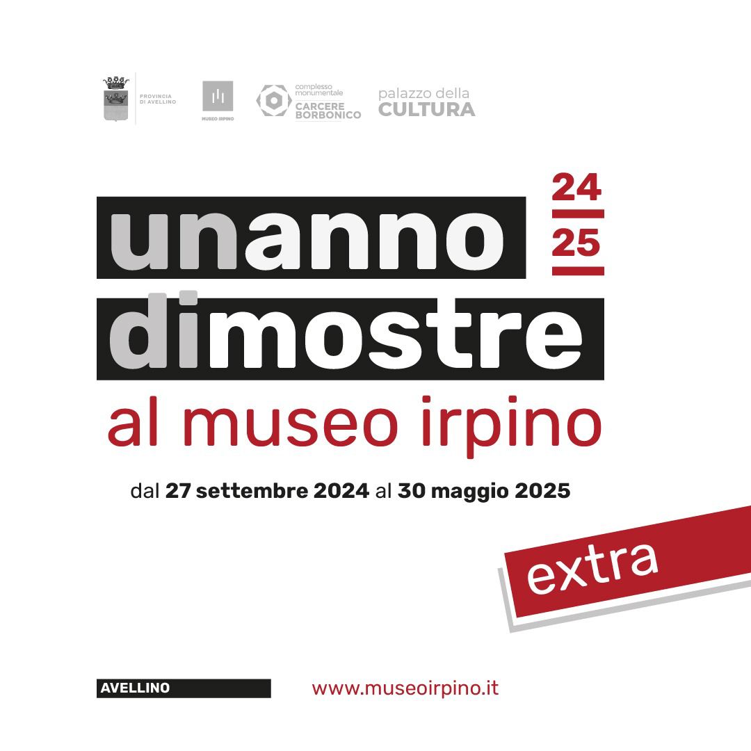 Il Museo Irpino, quest’anno, unisce al calendario annuale di “Un anno di mostre al Museo” un doppio programma intitolato ‘’UN ANNO DI MOSTRE EXTRA’’, promosso dalla Provincia di Avellino a cura del Coordinamento Tecnico Scientifico del Museo Irpino e della Biblioteca Provinciale Capone.