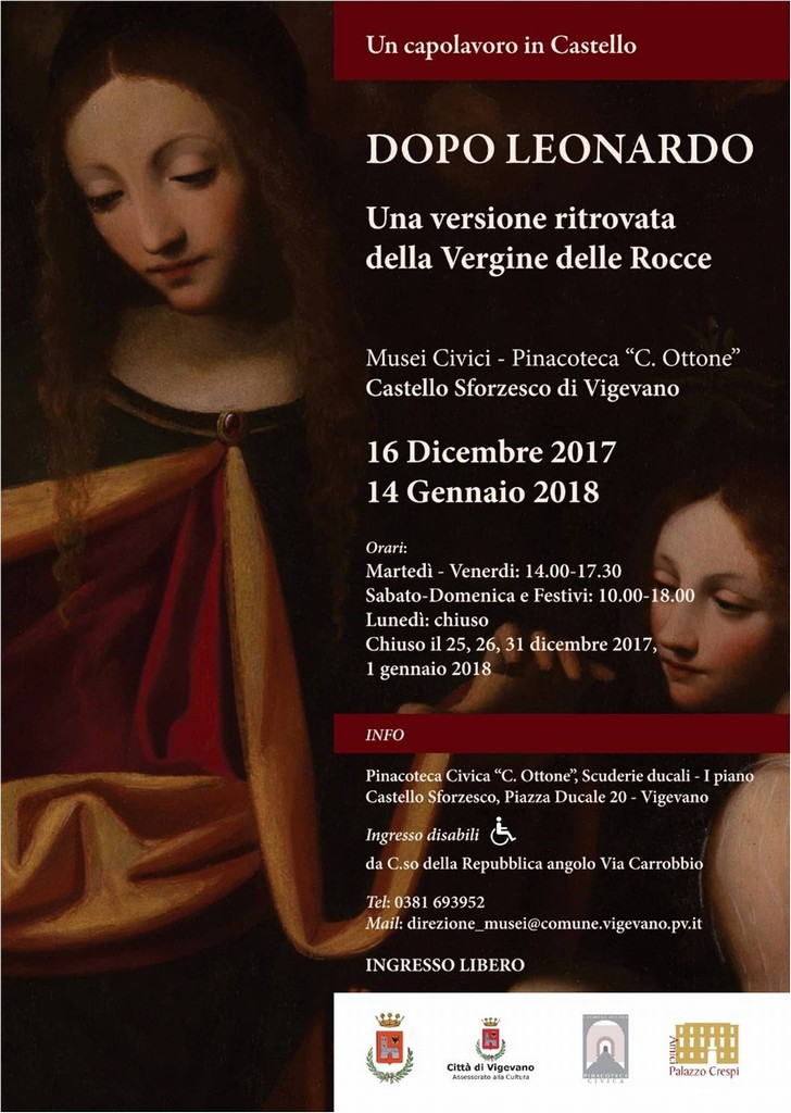 In una delle sale della Pinacoteca Civica “Casimiro Ottone”, al primo piano delle scuderie ducali del Castello, sarà esposta per la prima volta in assoluto - dal 16 Dicembre 2017 al 14 Gennaio 2018 – una versione ritrovata della celebre “Vergine delle Rocce” leonardesca realizzata per mano di uno dei suoi allievi, Marco D’Oggiono, nell’ottica di valorizzare le collezioni e i preziosi spazi a disposizione proprio nella città per cui Leonardo lavorò per conto dei duchi di Milano.