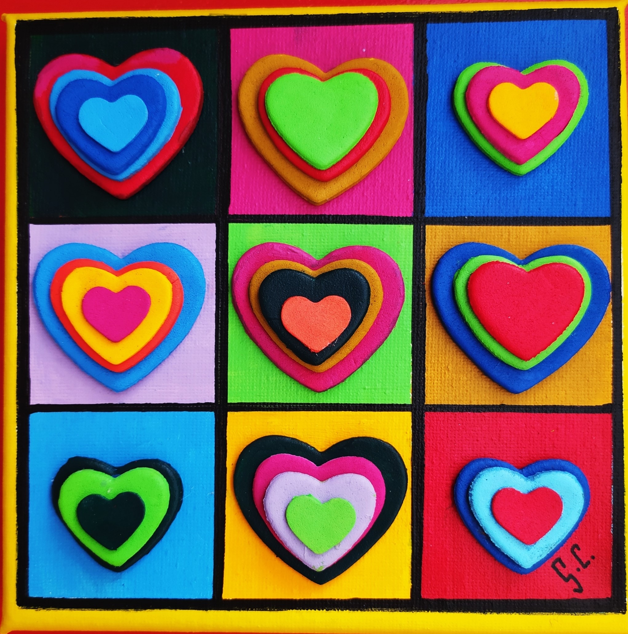 Alla prima mostra, dal titolo UN CUORE PER SAN VALENTINO, hanno preso parte 40 artisti che hanno dipinto un cuore su una piccola tela delle dimensioni di 15 x 15 cm Ogni artista ha realizzato, con diverse tecniche che vanno dall’acquarello alla ceramica, più di un cuore, per cui sono più di cento i cuori in esposizione.