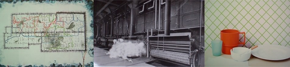 Alexander Robbins modifica immagini di camere private d’ospedale “disegnando” sui negativi corti circuiti e correnti elettriche, mentre in una serie di fotografie di macchinari di fabbrica materializza fantasmatici vapori, insinuando presenze che sono qui solamente evocabili.