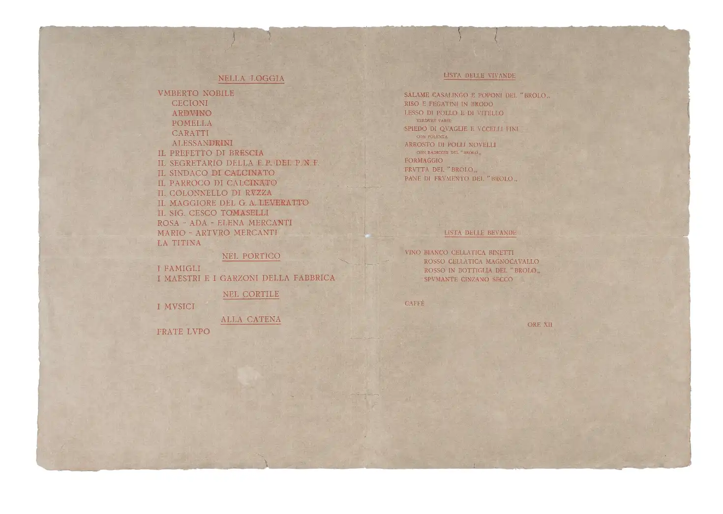 Un excursus fra i menu che raccontano la ‘quotidianità’ dei soldati e che offrono uno spaccato di quello che fu la Grande Guerra. Fra essi menu in vernacolo, menu dai vari fronti, dagli ospedaletti da campo e uno relativo al campo di prigionia per i soldati italiani di Theresienstadt del maggio 1918.