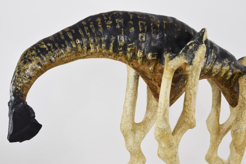 Lorenzo Scarpellini (Ravenna, 1994), vive e lavora a Ravenna dove si è laureato all’Accademia di Belle Arti nei corsi di Arti Visive e Mosaico. La sua ricerca ruota attorno ai concetti di transitorietà, metamorfosi, ma anche di effimero e antico, ed è molto affascinato dalla lenta e perpetua trasformazione che la materia compie durante la sua permanenza in una forma: tutto è destinato a cambiare e modificarsi, a degradarsi e a rinascere, in un infinito e continuo stravolgimento e scambio di informazioni. Costruisce le sue sculture per addizione, combinando insieme molteplici materiali, che sono frammenti o propriamente macerie. La loro scelta non è arbitraria, tendenzialmente sono materiali di recupero come legni, ossidi, terre, ferro, carbone, calce e plastica assemblati mediante cartapesta preparata con vari elementi come calce grassello, cemento, ossidi di metallo e polveri di pietra, al fine di ottenere corpi con particolari texture ed effetti visivi insoliti.