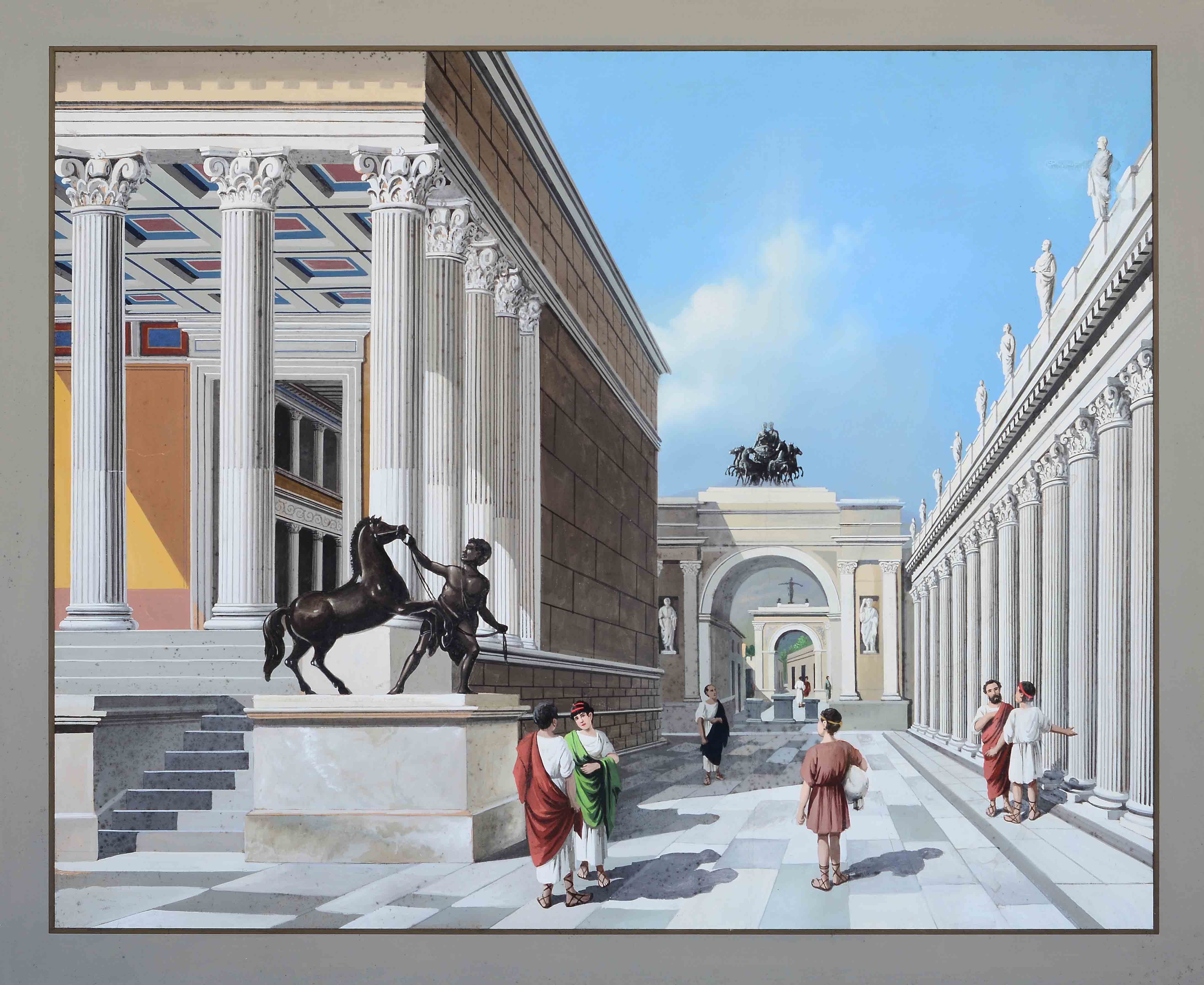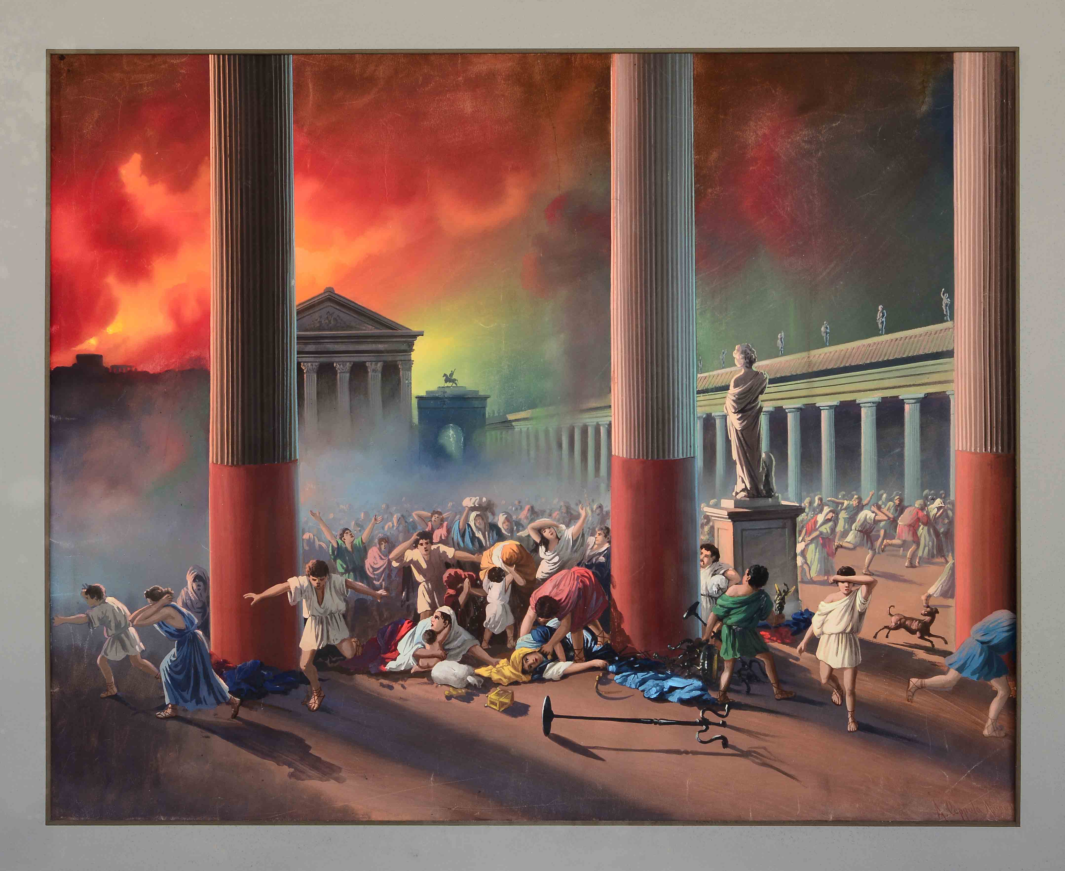 Le carte del Parergon in mostra svelano al pubblico il mondo antico conosciuto da Plinio, mentre le vedute di Coppola rievocano le atmosfere del I Sec. d. C., raffigurando scorci di Pompei prima e dopo l’eruzione del 79 d.C., evento nel quale trovò la morte proprio Plinio il Vecchio.