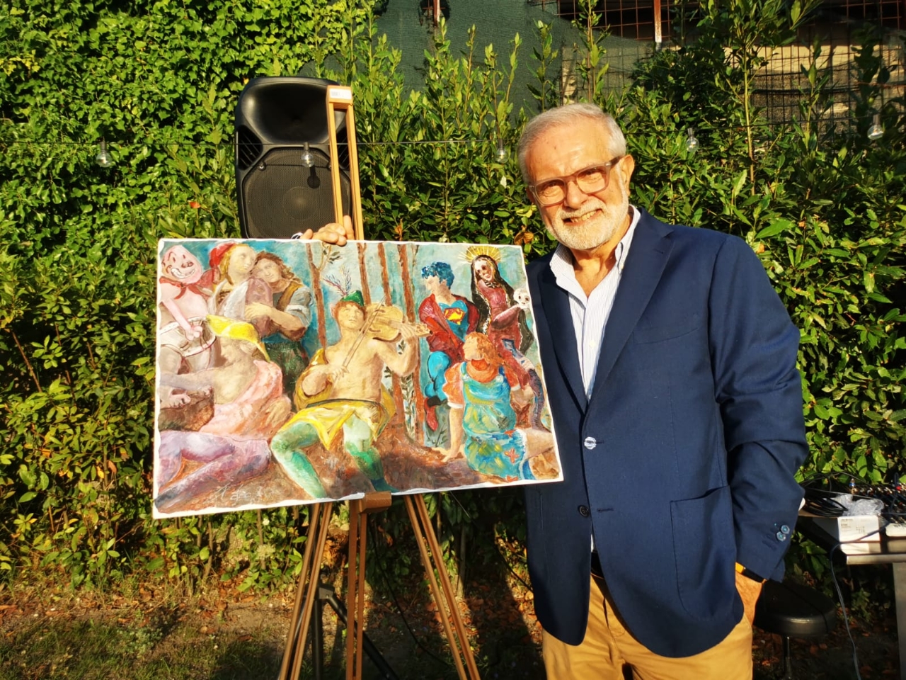 “In questo periodo estivo ed in questo luogo così evocativo, che definiamo di ambient experience, ci teniamo che l’arte si possa guardare, ascoltare e toccare -ci dichiara la Direzione- offrendo agli ospiti momenti insoliti, magari sorseggiando un cocktail internazionale. Il tutto nella cornice della tradizione di cui siamo da sempre testimoni e portavoce. L’interattività di un “Presepe POP” è tutto questo e non solo: le tele dell’artista di Torre del Greco, attraverso i colori e le immagini allontanano la malinconia dei tempi post-pandemici: l’autore analizza le opere dei grandi Maestri e la cronaca del proprio tempo, attraverso il caleidoscopio della commedia dell’arte (Rugantino, Meo Patacca, Pulcinella, Arlecchino, Pantalone) e delle maschere da tutto il mondo (i Supereroi, le maschere asiatiche, africane)”.