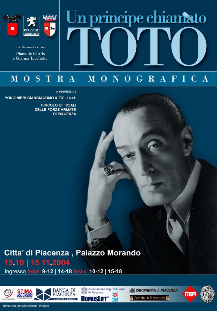 Nell’ambito di un grande Evento dedicato al Principe Antonio de Curtis, fortemente voluto dal Dott. Giovanni Vicinanzo, e dalla Dott.ssa Franca Rocchi, rispettivamente Direttore e Segretaria del Circolo Ufficiali delle Forze Armate di Piacenza e grazie all’importante contributo Peugeot/Ponginibbi del Cav. Dott. Giangiacomo Ponginibbi, in collaborazione con la ADC Comunicazione e con il Comune e la Provincia di Piacenza e grazie ai contributi logistici di Piacenza Expo, Stima Ascensori, Banca di Piacenza, Ass.ne degli Industriali di Piacenza, Domus Lift, IGV, CARIPARMA & Piacenza, MBR, Castello di Rezzanello, Camera di Commercio di Piacenza, il Principe Antonio de Curtis, sarà finalmente presente a Piacenza, con il nuovo allestimento della mostra “Un Principe chiamato Totò”.
