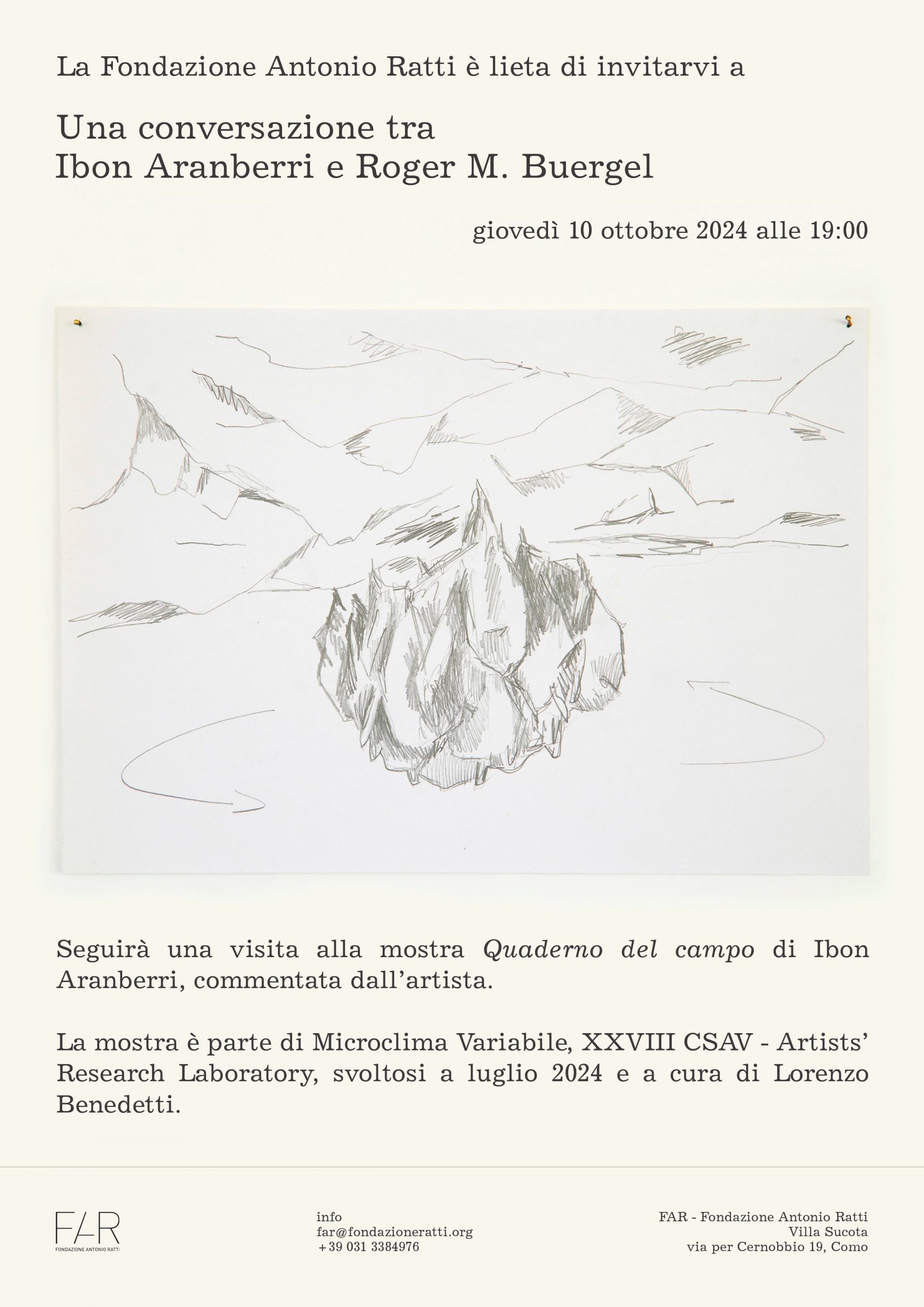 La conversazione sarà seguita da una visita guidata alla mostra Quaderno del campo, inaugurata l'11 luglio e parte di Microclima Variabile (XXVIII CSAV - Artists’ Research Laboratory).