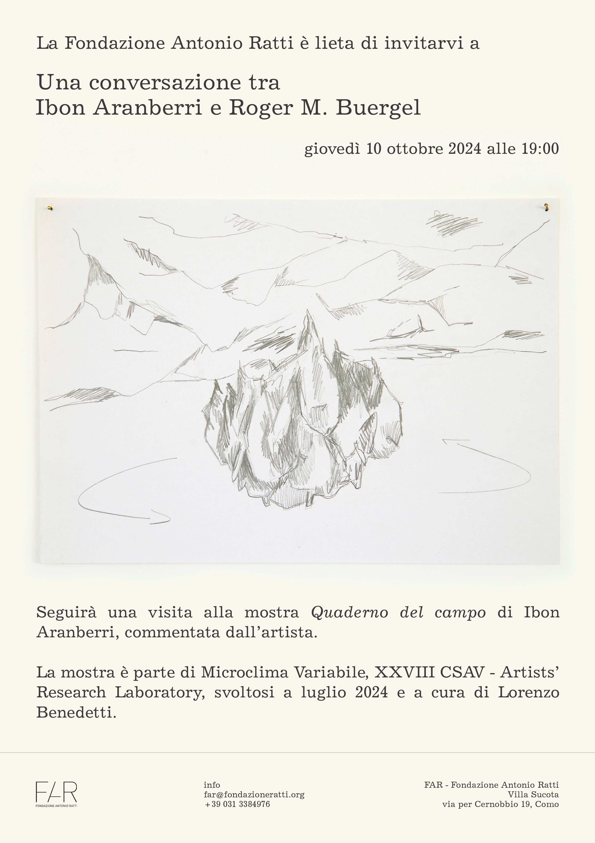 Nel desiderio di approfondire l’opera di Ibon Aranberri, il curatore Roger M. Buergel e l’artista basco offriranno una conversazione aperta al pubblico, facendo seguito ad un lungo sodalizio professionale.