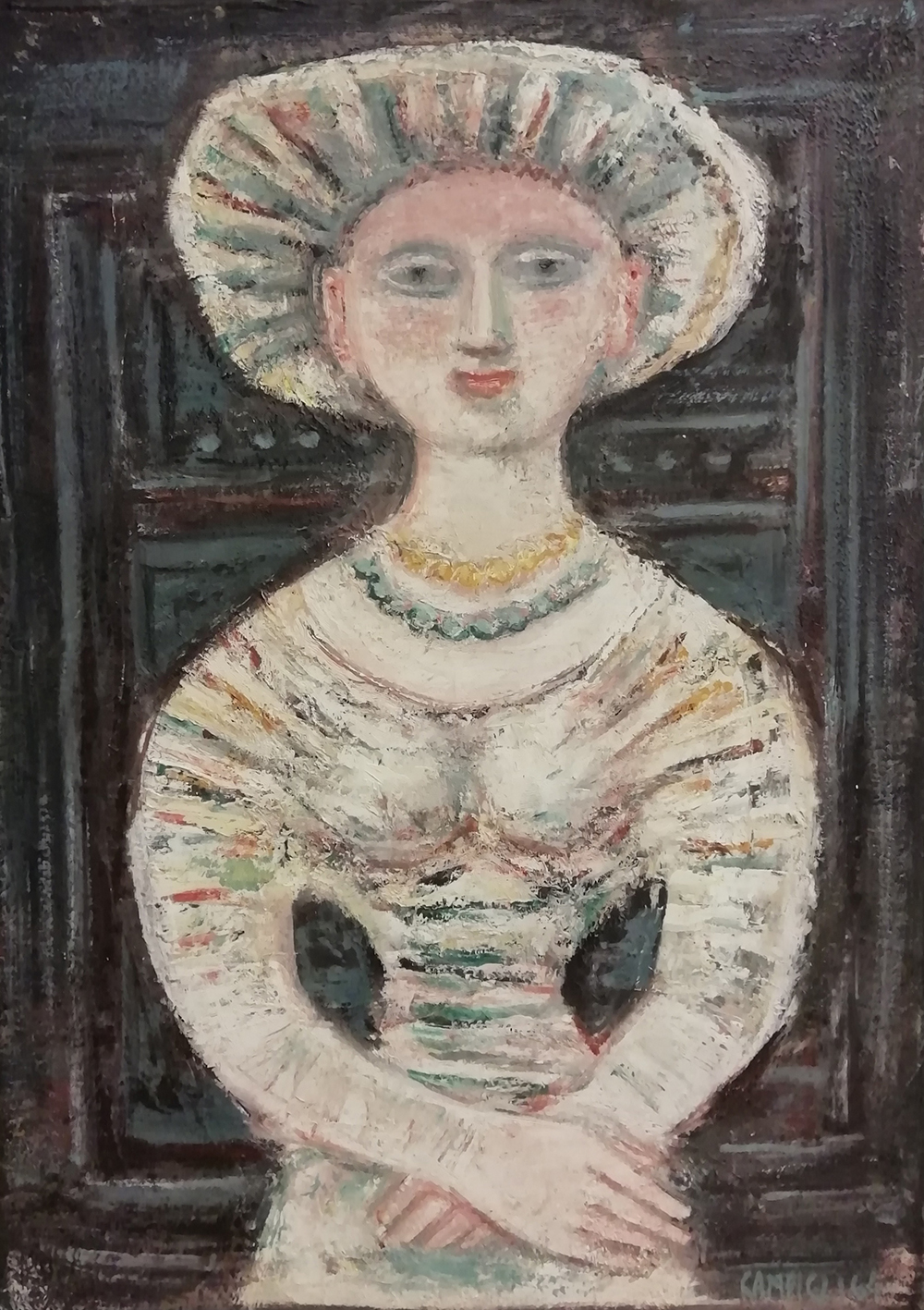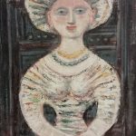 Spicca fra tutti, come un gioiello antico, una “Figura di donna” di Massimo Campigli: un dipinto ieratico, solenne e regale, con una raffinata scelta cromatica che crea variazioni sui temi del celeste, del bordeaux e dell’oro.