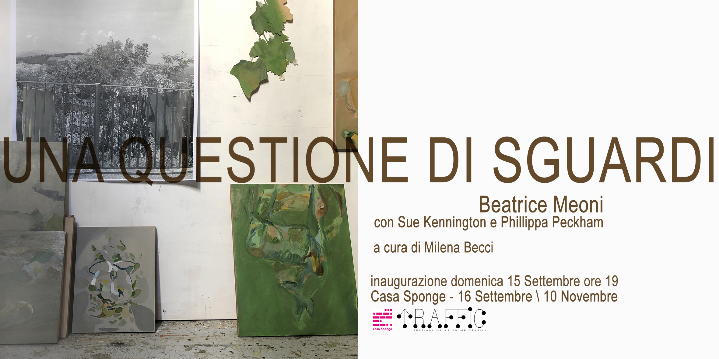 Una Questione di Sguardi, personale di Beatrice Meoni. con Sue Kennington e Phillippa Peckham, a cura di Milena Becci. Il progetto rientra nel cartellone di TRAFFIC – Festival delle Anime Gentili, che chiude con la mostra a Casa Sponge la tre giorni di questa edizione, regalando un segnale di condivisione e di unione.
