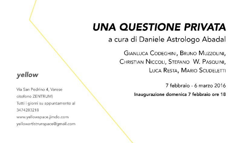 Domenica 7 febbraio, alle ore 18, a Yellow si inaugura la mostra collettiva dal titolo Una Questione Privata, a cura di Daniele Astrologo Abadal.