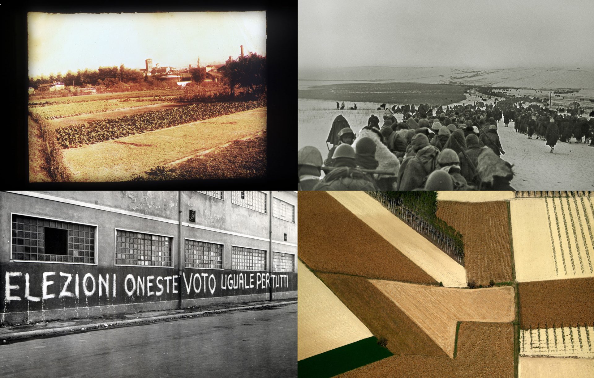 Nella Fototeca Gilardi il tema della pianura si trova all’interno di tre categorie iconografiche: nelle immagini che rappresentano gli eventi storici ambientati nel territorio pianeggiante, nelle fotografie in cui sono visibili le parole incise sui muri nel paesaggio urbano, all’interno di immagini sperimentali.