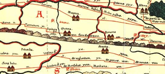 La presenza di una mansio a Forum Gallorum è confermata dalla Tabula Peutingeriana che, con l’Anonimo Ravennate, costituisce la principale testimonianza dell’esistenza del vicus, posto in un importante snodo itinerario e che permane anche in epoca medievale.