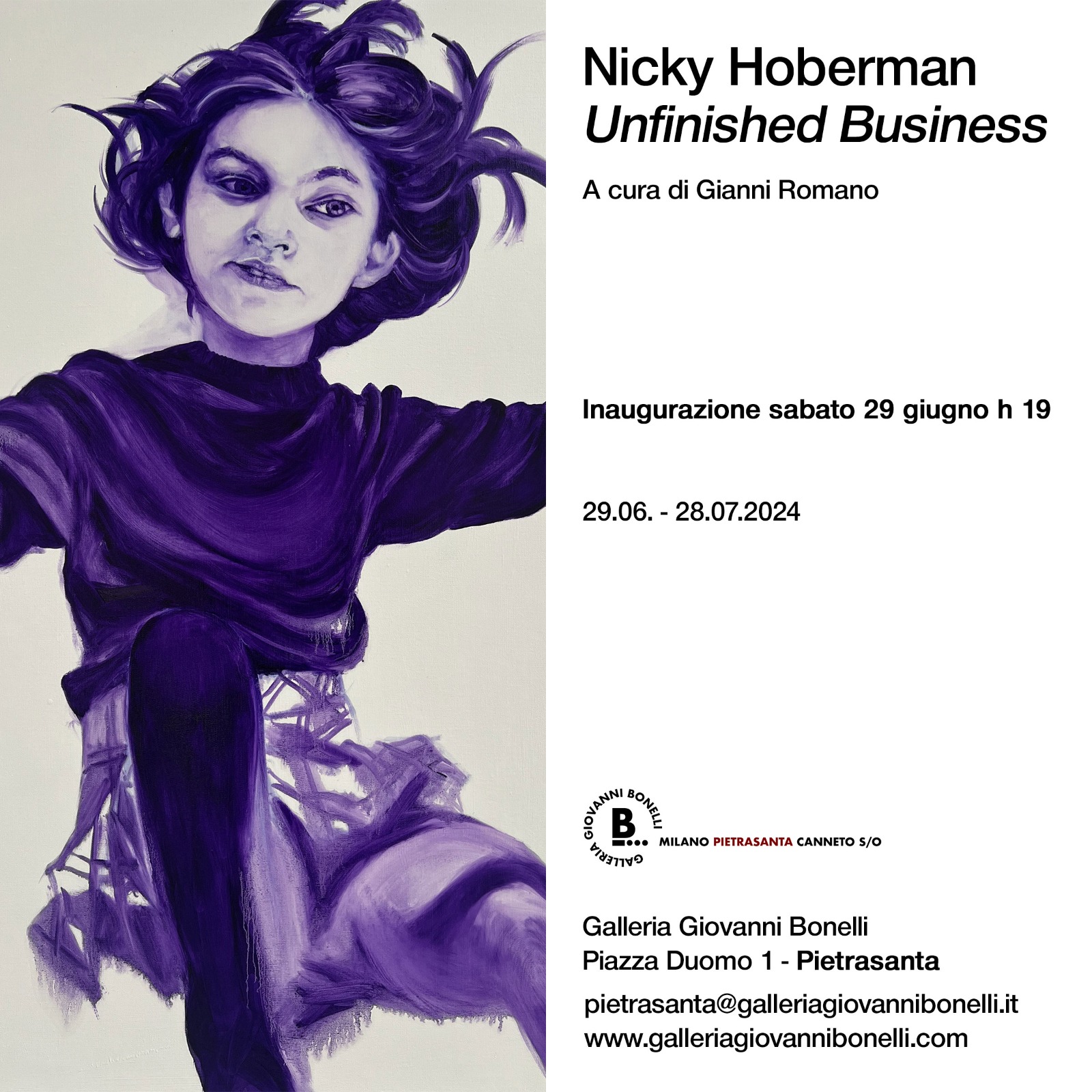 La Galleria Giovanni Bonelli è lieta di presentare Unfinished Business, la prima mostra personale nella nostra sede di Pietrasanta dell’artista Nicky Hoberman, curata da Gianni Romano.