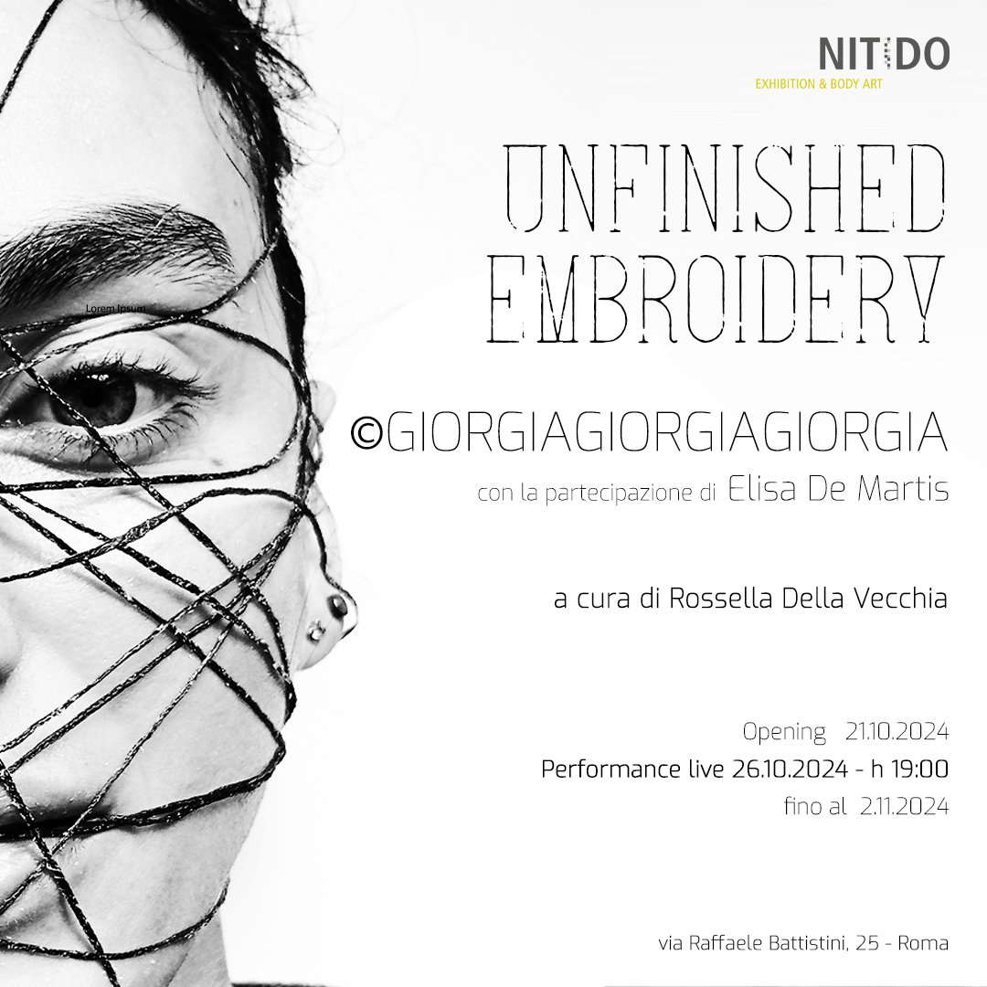 Promossa negli spazi della NITIDO-Exhibition & Body Art, Unfinished Embroidery verrà realizzata con la collaborazione interna della NITIDO-Allestimenti e della NITIDO-Comunicazione & Grafica.