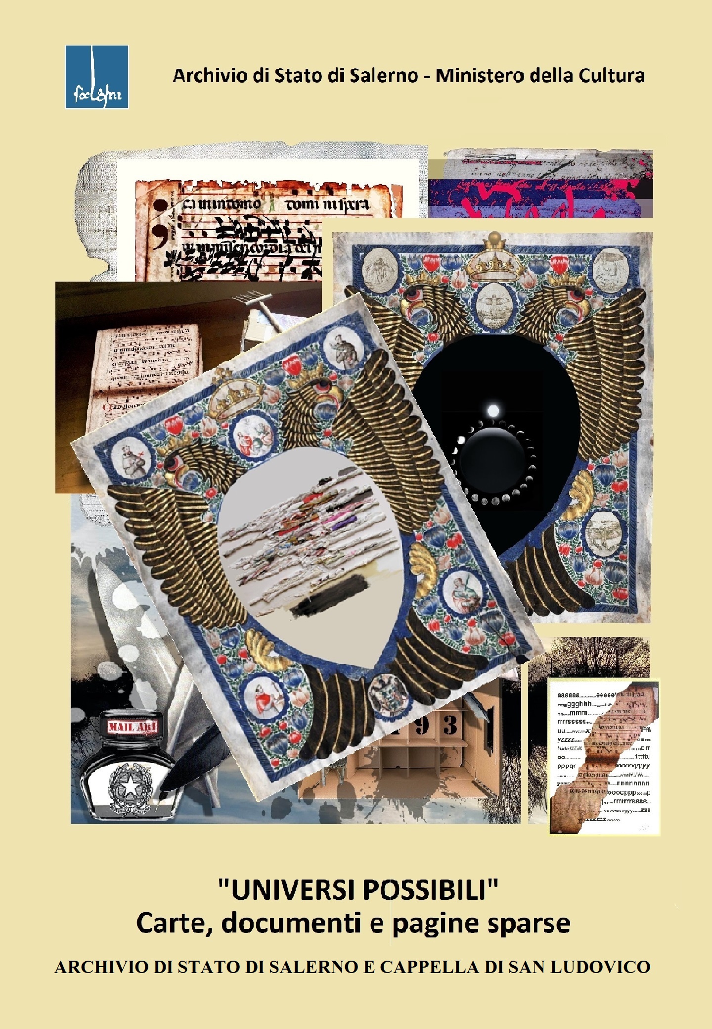 Dopo la mostra "Carte, cartapecore, scartoffie e pinzillacchere” del 2017 presentata all’Archivio di Stato di Salerno con l’esposizione di antiche pergamene, scritture e documenti originali in un insolito viaggio dentro il passato e il ventre dell’Archivio, a distanza di 7 anni viene presentato nel Salone dell’Archivio di Stato di Salerno un secondo evento dal titolo: “UNIVERSI POSSIBILI, carte, documenti e pagine sparse” a cura di Sandro Bongiani che comprende l’utilizzo di undici documenti già presentati nella precedente mostra per essere ora utilizzati come base di lavoro da 43 importanti artisti italiani e stranieri, diversi per età e linguaggio espressivo, invitati a intervenire, ognuno con il proprio vissuto e visione poetica a realizzare l’opera “unica” per questo evento collettivo a Salerno.