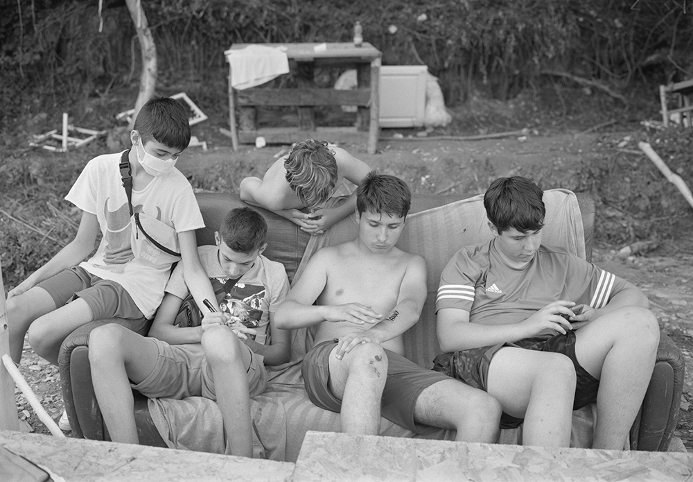 Giovani di epoche e luoghi diversi sono accomunati da momenti di spensierata vitalità, come nelle spiagge di Claude Nori o nei dancing di Gabriele Basilico; a volte sono gli scugnizzi di Antonio Biasiucci, altre gli adolescenti di Mario Cattaneo o ancora il gruppo di ragazzi immersi nella natura di Claudio Majorana. A questi si contrappone una condizione più sospesa e incerta, evocata dai ritratti urbani e metropolitani di Marco Signorini e Tomaso Clavarino. Il tema dell’identità collettiva e del rapporto con contesti sociali divergenti caratterizzano infine le ricerche di Giovanni Ambrosio – la dimensione Ultras nelle curve di tutto il mondo – di Tommaso Mori, in un quartiere popolare di Modena e di Rachele Maistrello, che fonde immaginario gaming e tecnologia in un ambito rurale.