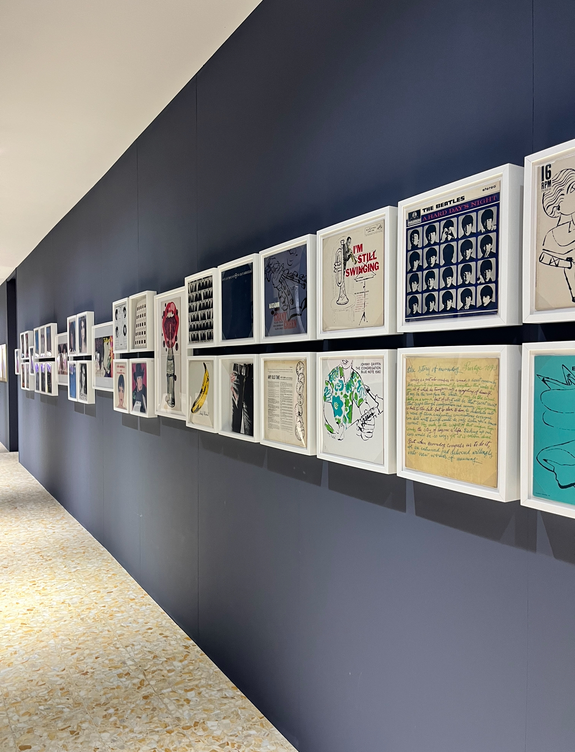 La mostra espone esempi di queste sue passioni di cui si trovano ampi riscontri nello splendido Gold Book, che era solito realizzare per i suoi amici quale regalo di Natale o nelle innumerevoli cover per i vinili di alcuni dei miti della musica mondiale, così come le sperimentazioni di Interview, che diventeranno una sorta di passepartout verso il mondo del Glamour internazionale, il quale faceva a gara per entrare in questa sorta di edonistico Pantheon Warholiano.