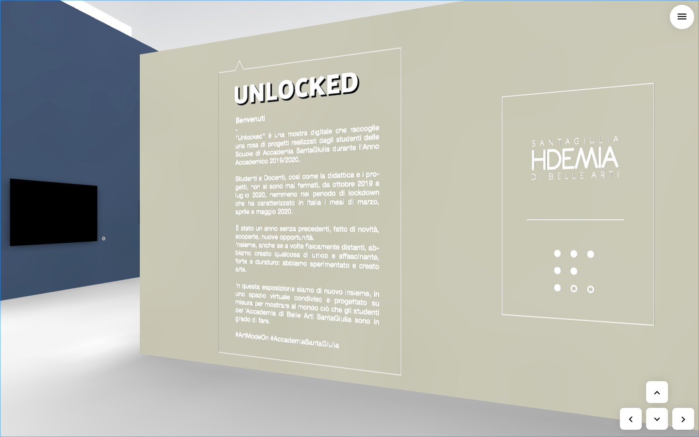 “Unlocked” è una mostra digitale che raccoglie una rosa di progetti realizzati dagli studenti delle Scuole di Accademia SantaGiulia di Brescia. Una mostra accessibile a tutti, con un semplice click, senza orario di ingresso o di uscita; una mostra che mantiene l’esperienza di camminare nelle sale.