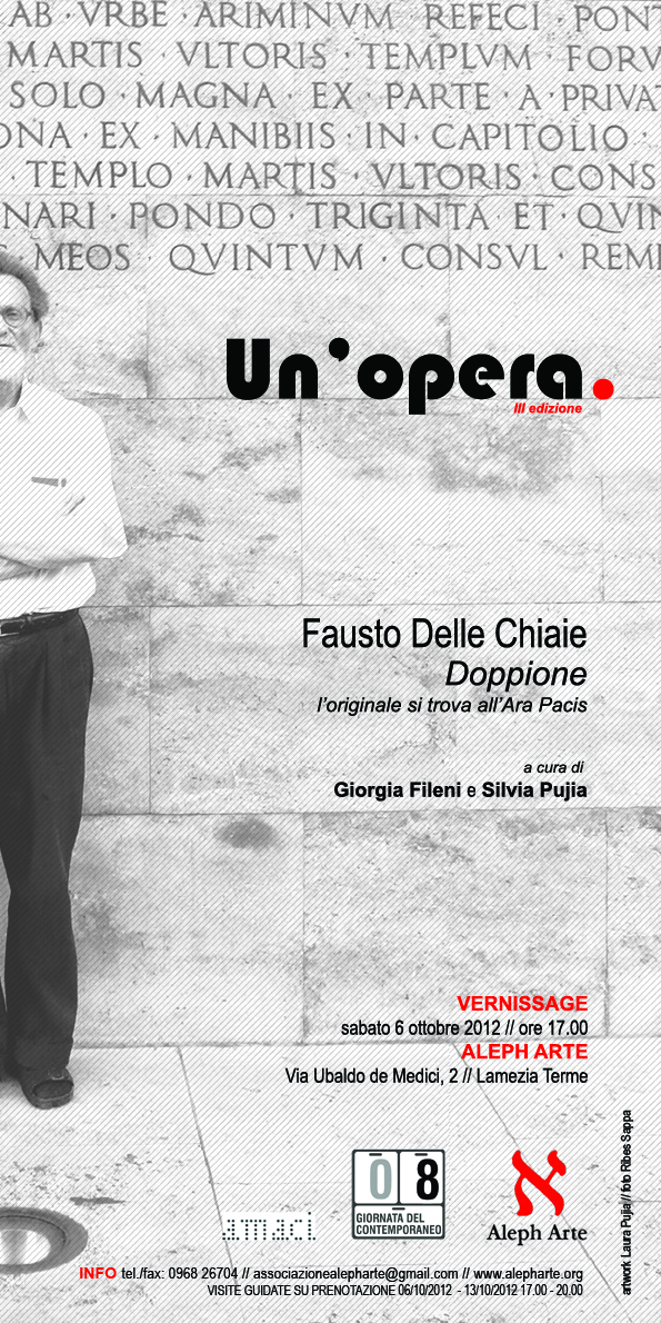 In occasione della 8ª Giornata del Contemporaneo l’Associazione Culturale Aleph Arte propone l’opera di Fausto Delle Chiaie, “Doppione – l’originale si trova all’Ara Pacis”, a cura di Giorgia Fileni e Silvia Pujia, con cui si dà seguito al progetto “UN’OPERA”.