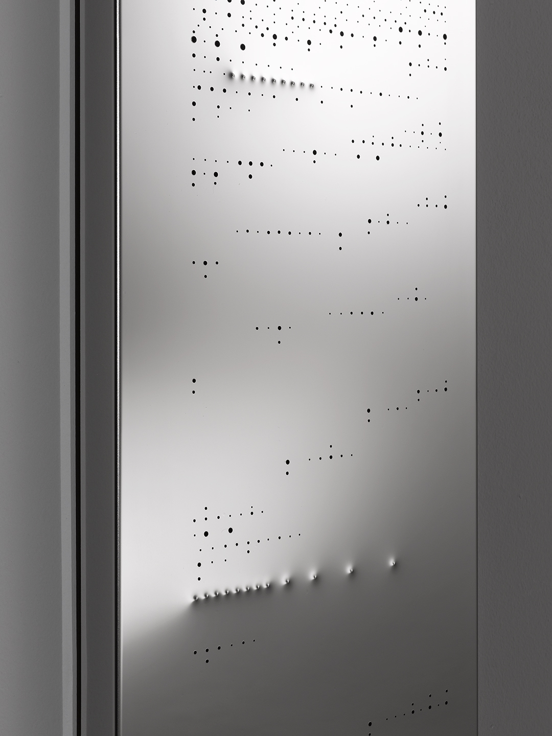 infiniti fori (l’attraversamento) realizzati con il trapano a punteggiare le diverse superfici utilizzate, dal plexiglass al piombo