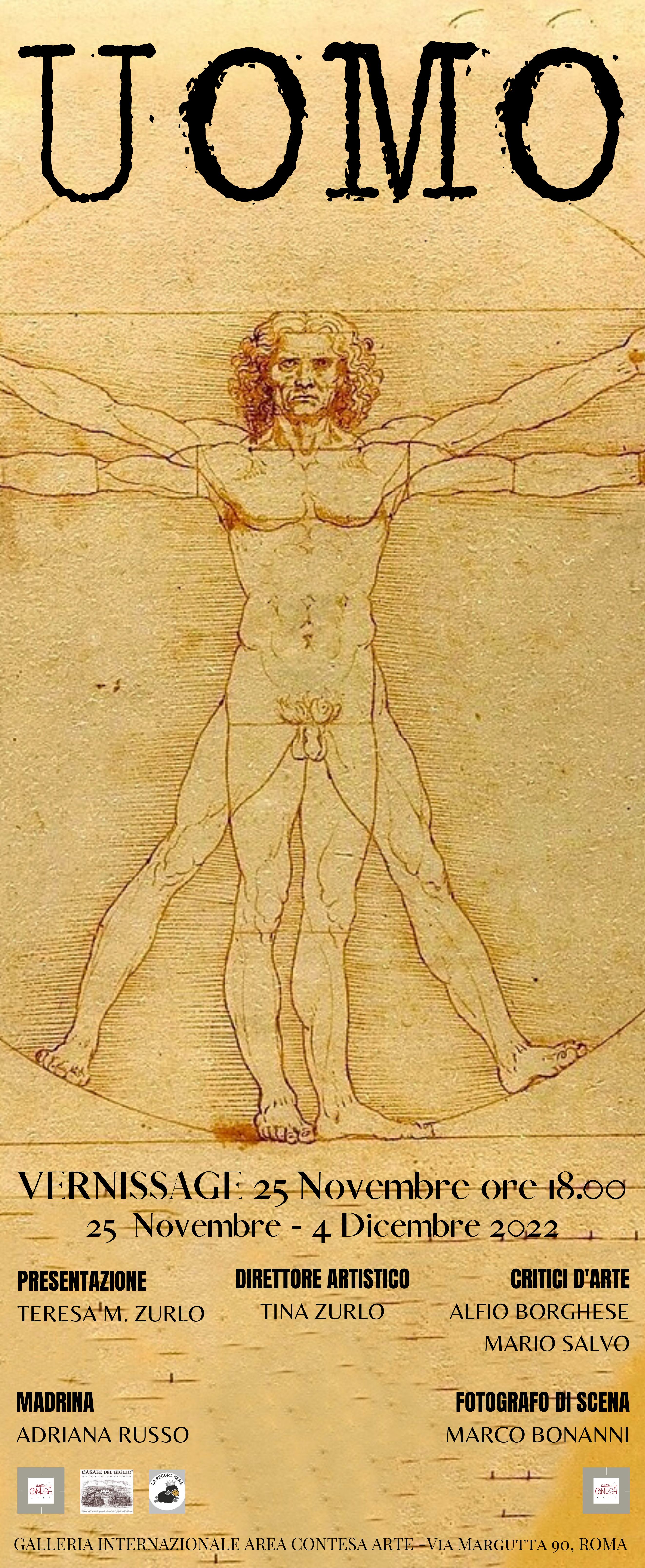 La Galleria Internazionale Area Contesa Arte presenta le Rassegne di Arte Contemporanea “UOMO” 25 Novembre- 4 Dicembre 2022. L’Evento assolutamente eccezionale, assolutamente unico nel suo genere, creato e curato da Teresa M. e Tina Zurlo, sarà arricchito da spettacolo, Musica e degustazioni.