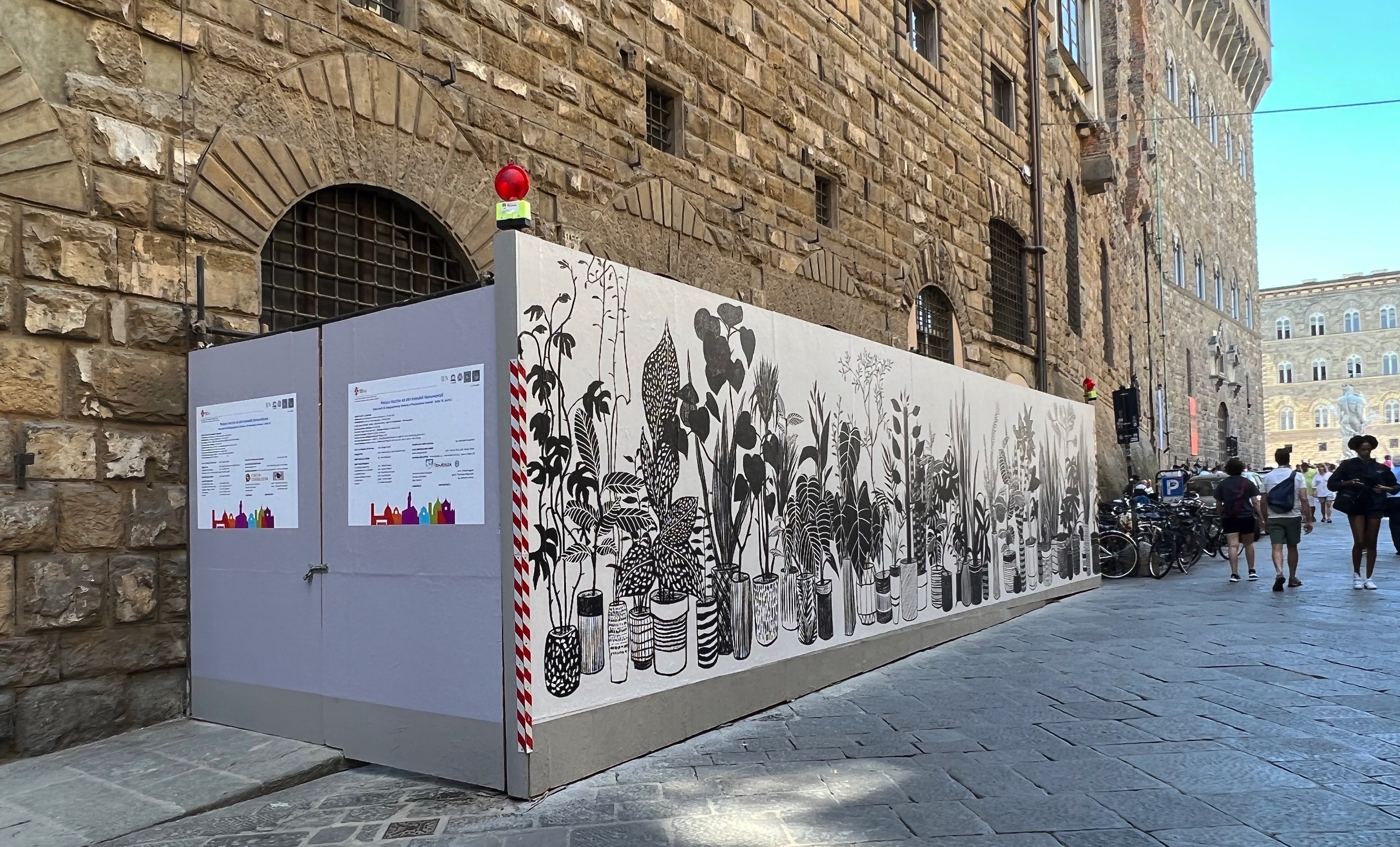 Il progetto “Cantieri” dell’Accademia di Belle Arti di Firenze si arricchisce di un nuovo intervento artistico. Si chiama Urban Forest ed è un’illustrazione appositamente realizzata dalla studentessa Yun Zhang per il cantiere che il Comune di Firenze ha aperto nella sua sede storica in Piazza della Signoria (lato via dei Gondi).