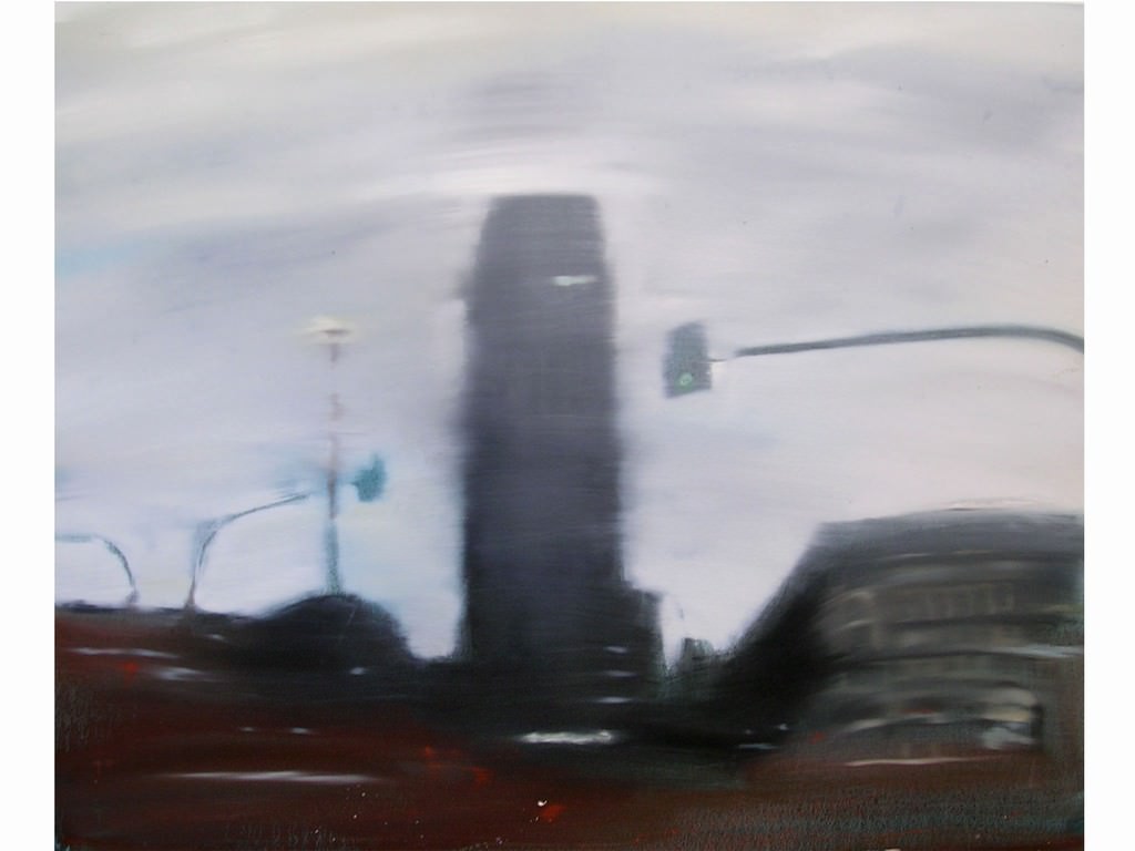 Leonard Sherifi inquadra vedute della città caotica, piena di traffico, affollata di autobus e di insegne, brulicante di colori e di stimoli, ripresa nella sua incessante attività attraverso pennellate corpose, dai colori vibranti che colano sulla tela. Immagini in presa diretta sulle quali si inserisce il ricordo e lo spazio si restringe o si dilata, riproducendo situazioni che ognuno vive, trasmesse attraverso l’energia del colore.