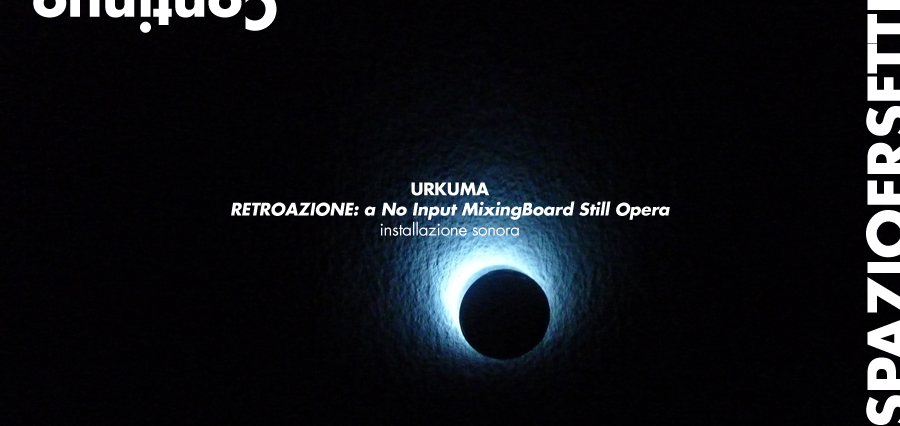One audio Mixer and that’s all. Nothing else is used to set up this sound installation made by Urkuma especially for Spazioersetti. The electrical signal is looped in the mixer itself creating a audio feedback and amplified with a multi channel system.