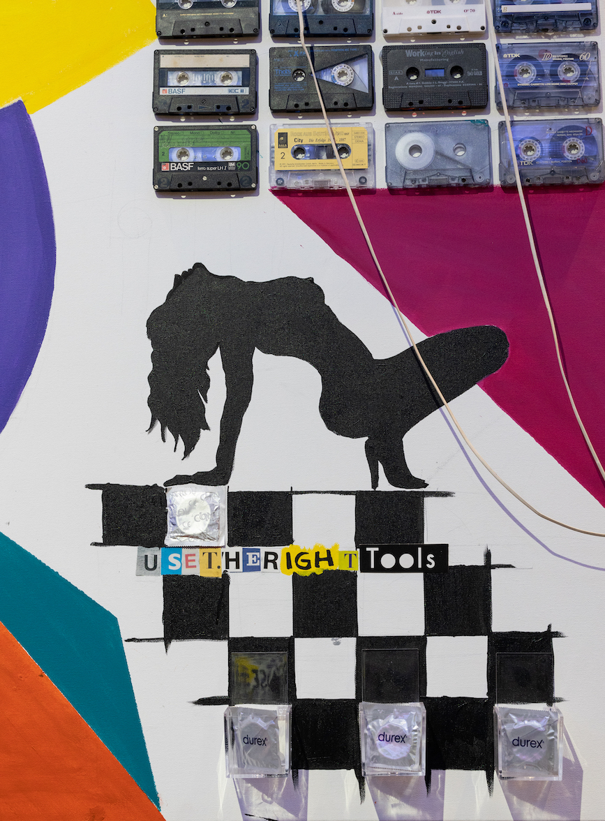 Tra colori e riflessioni su safe sex e sex positivity, ci si ritrova di fronte ad una enorme bottigliera contenente alcol, lego e video-installazioni. Un bar, un luogo di relax, la musica, un drink dopo l’altro e una One Night Stand, che se non vissuta con l’uso degli strumenti giusti può diventare la nostra personale guerra, causata dalla sola negligenza di non aver usato un semplice preservativo.