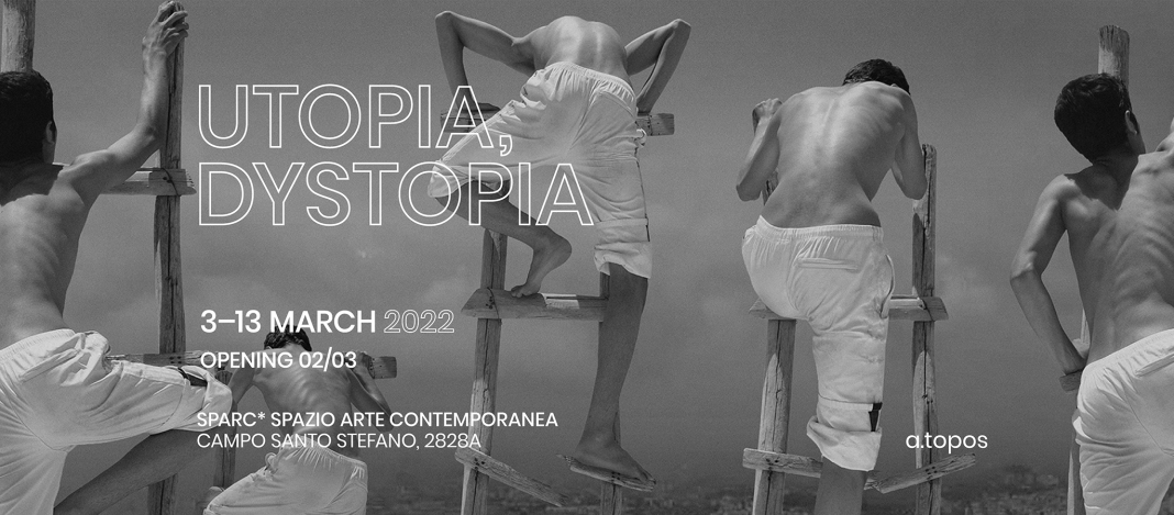 La narrazione si apre con la prima esposizione ‘Utopia,Dystopia’ che raccoglie opere d’arte che offrono insieme scenari utopici e vie per un domani distopico. I visitatori si trovano davanti ad un percorso espositivo che crea spazi visuali e sonori che variano tra l’invito a navigare insieme anziché affondare e l’evidenza del peso del tempo che verrà.