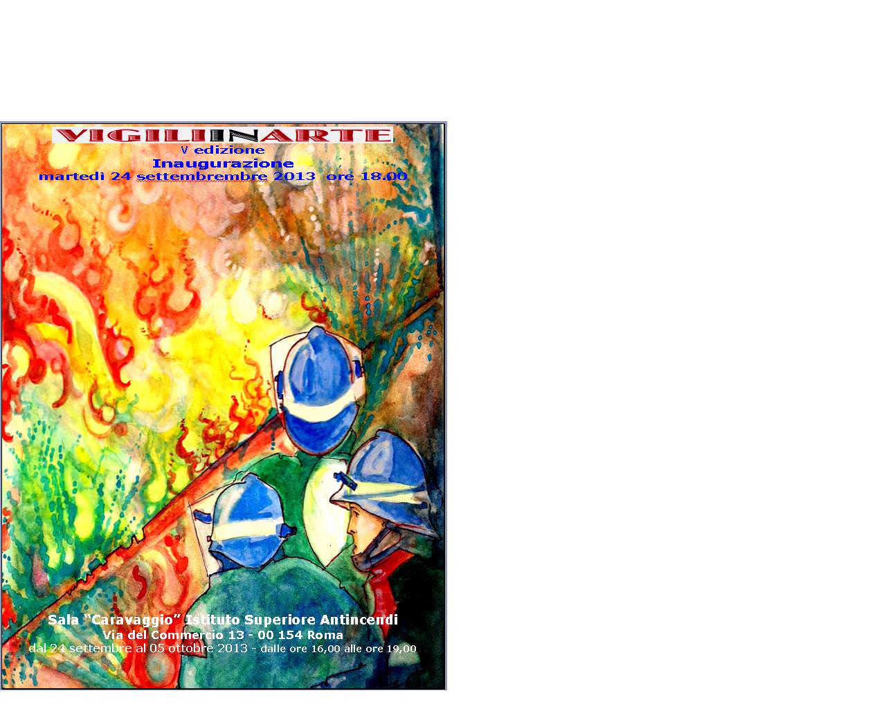 “Il Fuoco dell’Arte ” è il titolo della V Edizione di “VigiliinArte” che sarà inaugurata martedì 24 settembre alle 18.00 all’Istituto Superiore Antincendi, saranno presenti i vertici del Dipartimento dei Vigili del Fuoco.