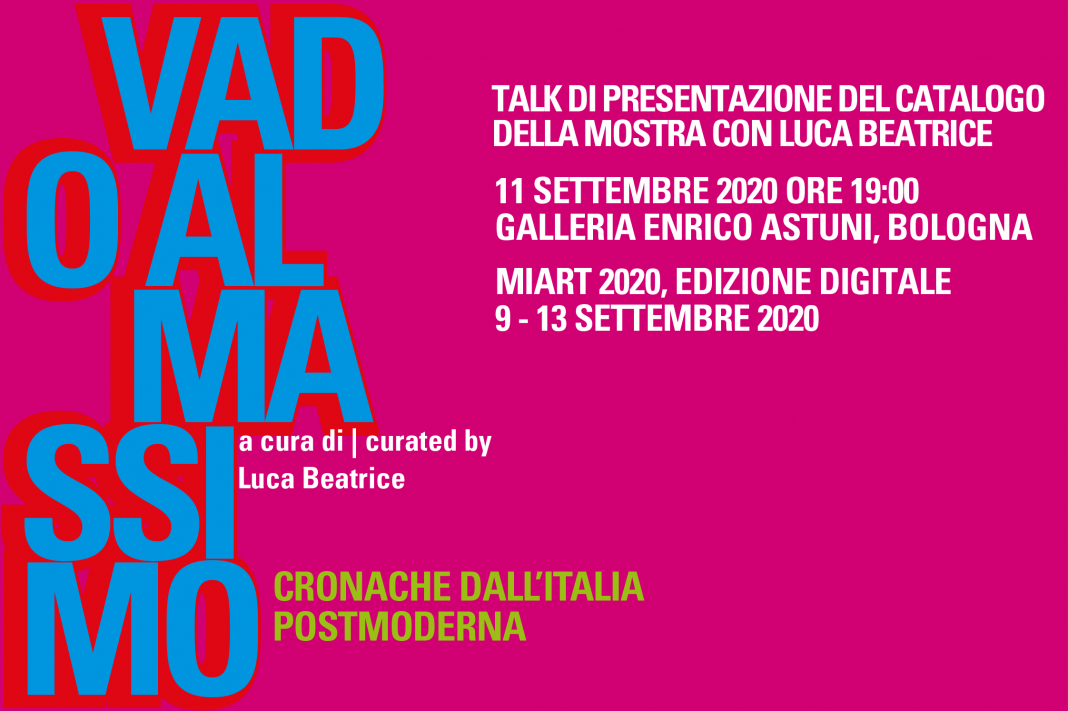 Talk di presentazione del catalogo della mostra Vado al massimo. Cronache dall’Italia postmoderna, con il curatore Luca Beatrice. L’evento è in concomitanza con la partecipazione della galleria a miart 2020, edizione digitale.