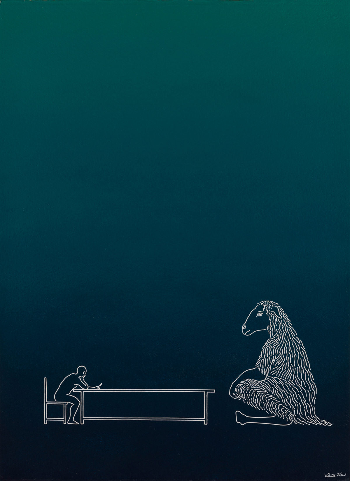 In esposizione una serie di recenti dipinti a olio e china su carta: sintetici lavori dal taglio narrativo, nei quali un minuscolo individuo - inconfondibile protagonista delle opere di Taddei - si ritrova in situazioni costantemente in bilico tra ironia e paradosso. L’artista propone una lettura metaforica della condizione umana, sdrammatizzando, con sottile ironia, il senso di vuoto e di caducità che l’uomo può provare di fronte al proprio destino.