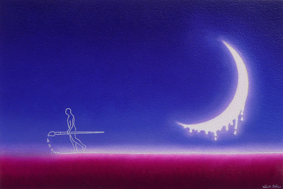 Nei sintetici lavori di Valente Taddei è raffigurato un minuscolo individuo - immancabile protagonista delle opere dell'artista toscano - che conduce una paradossale esistenza, sospesa in tempi e spazi indefiniti. Taddei offre una metafora dei limiti umani, sdrammatizzando, con ironia, il senso di caducità che l’uomo può provare dinanzi al proprio destino.