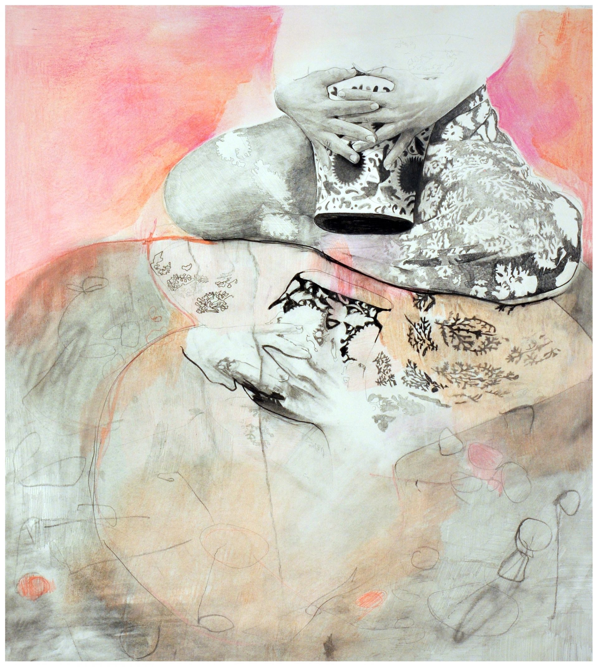 Nei lavori esposti in questa mostra, Valentina Biasetti prosegue la sua originale ricerca mediante gli strumenti del disegno e della pittura, affrontando il tema della figura femminile collocata in una situazione astratta ed atemporale. Ogni presenza è fissata dentro una teatralità essenziale