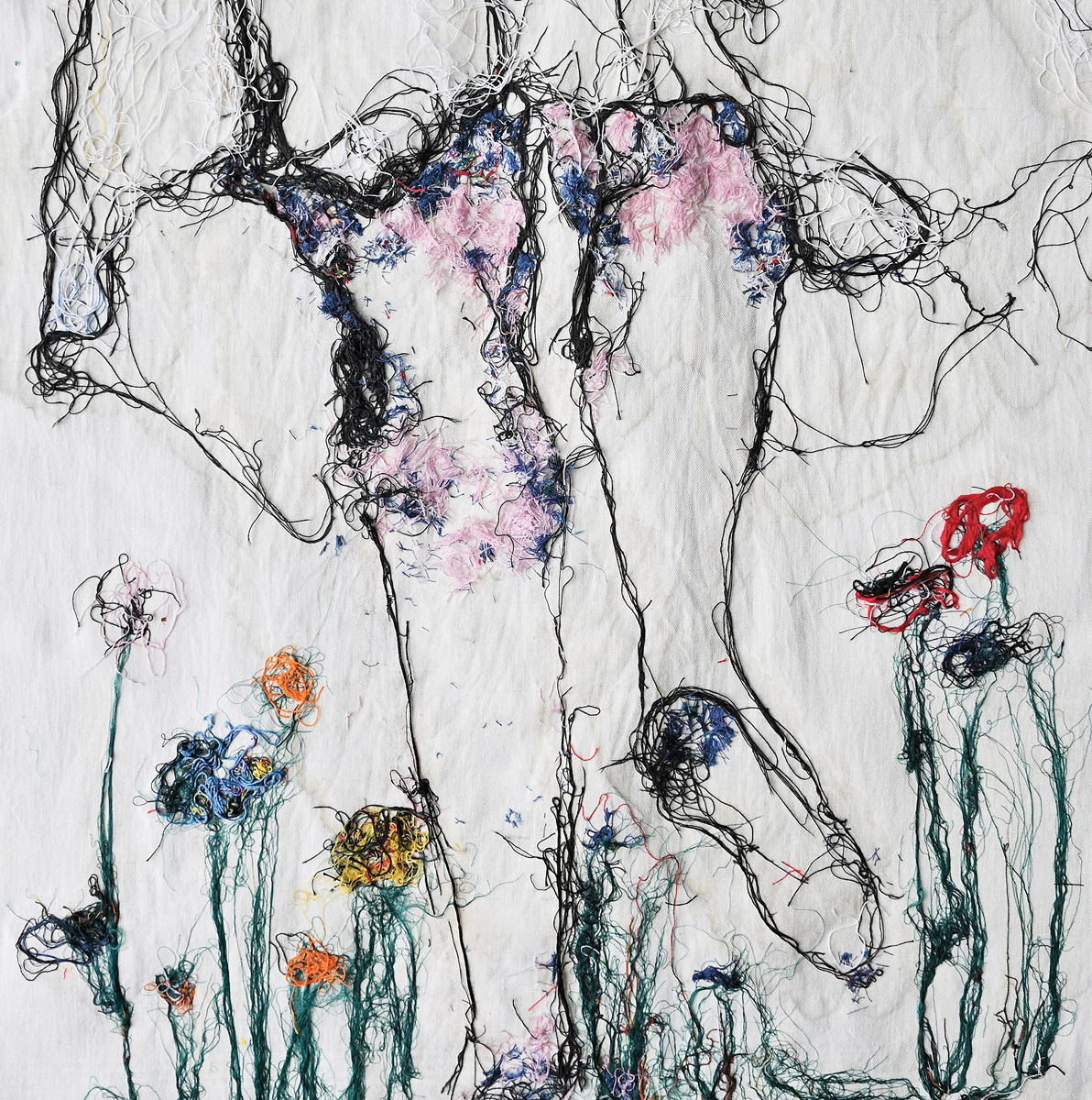 E così questi accumuli di nodi e addensamenti, nel momento stesso che creano figure, le disfano; si condensano nei disegni e subito sembrano sciogliersi, per poi riaddensarsi in altre zone. Mostrando, in questo modo, non più solo figurazioni: certo, volti, corpi, figure floreali, soprattutto, o fiori che si mescolano e sembrano originare altri volti, fiori-visi. Ma anche dando vita ad esplosioni di queste stesse immagini: liberando così linee energetiche, che si dipartono e si ridividono; inventando nuove reti e intelaiature ulteriori, sottili e successive. Offrendo l’impressione di una dinamica di forze che mettono in vibrazione tutto lo spazio dell’opera. E così, da una ragnatela fra fiori, volti e corpi si torna a bozzoli, reti e ispessimenti: in un continuo passaggio, fra figura ed astratto, passando per la trama dei fili. Federico Montanari.