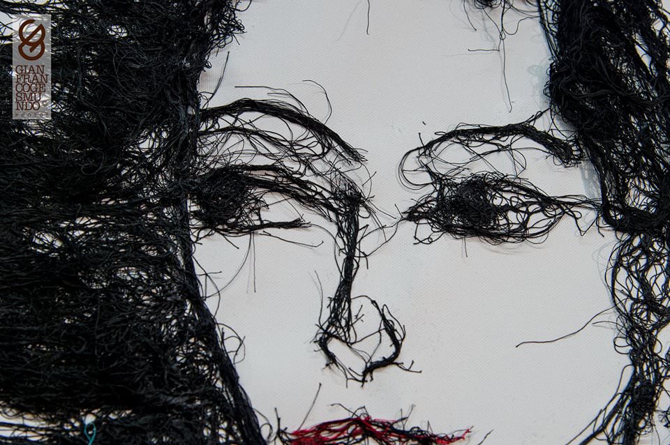 Opere realizzate col filo di cotone in modo evocativo e raffinato, ed una performance di musica e arte visiva durante l’inaugurazione