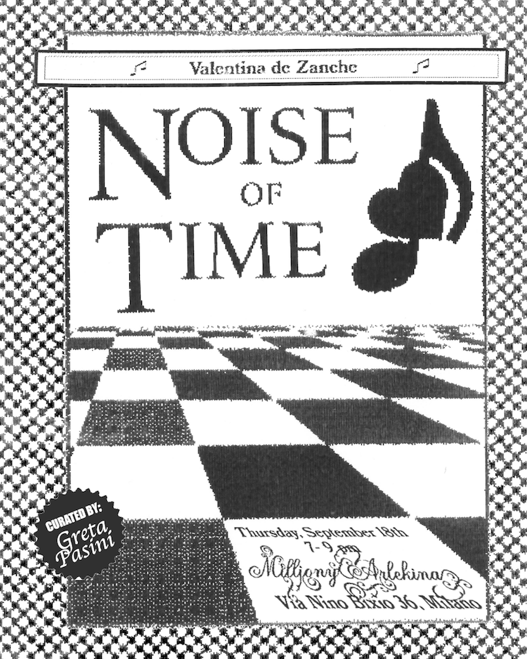 Noise of Time, prima personale milanese di Valentina De Zanche (1992) a cura di Greta Pasini, si presenta come un campo stratificato e immersivo, dove opere visive, parola e suono si rispondono nel tentativo di catturare la densità emotiva del tempo.