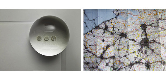 The point of., invece, contiene il tempo lento dell’attesa come lo contiene l’applicazione meticolosa e stupita di Sophie a registrare con piccoli punti l’andamento dei flussi migratori degli uccelli mentre disegnano nuove geografie in violazione della geografia. In Migrations (over Belgium) l’esito sono carte geografiche costellate di migliaia di puntini di inchiostro nero impegnate a comporre e a dissolvere forme, per disporsi intorno ad un interrogativo che investe un parallelismo tra le migrazioni in volo e le infinite migrazioni sulla terra.