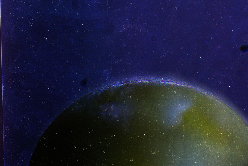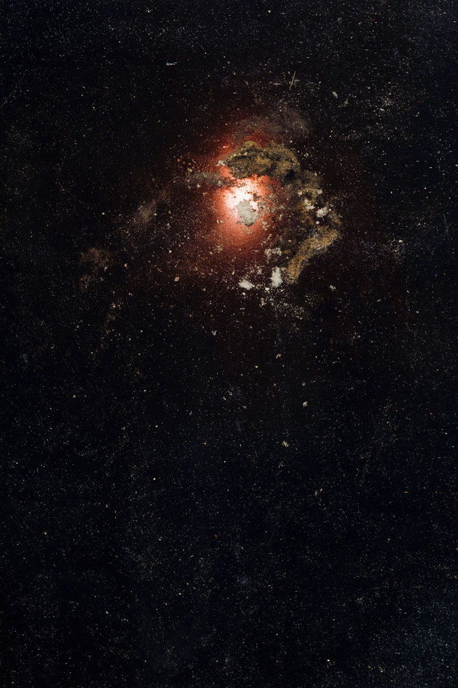 Le opere del progetto non sono fotografie di corpi celesti. Per realizzarle sono stati osservati e fotografati 130 materiali fra metalli, tessuti umani, animali, polveri e muffe.