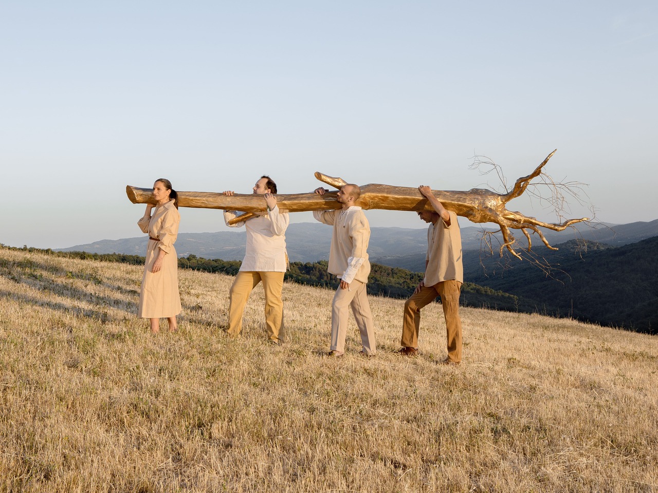 Adorato Paesaggio, parafrasa nel suo titolo le “adorazioni” spesso protagoniste dei dipinti, ma pone l’accento anche sull’adorazione come gesto estatico di contemplazione difronte ad una veduta; in questo contesto il paesaggio è sfondo e allo stesso modo protagonista, contenitore e contenuto: un patrimonio materiale e immateriale da conservare e su cui inserire figure immaginifiche e installazioni dorate che ce ne sottolineano la sacralità.