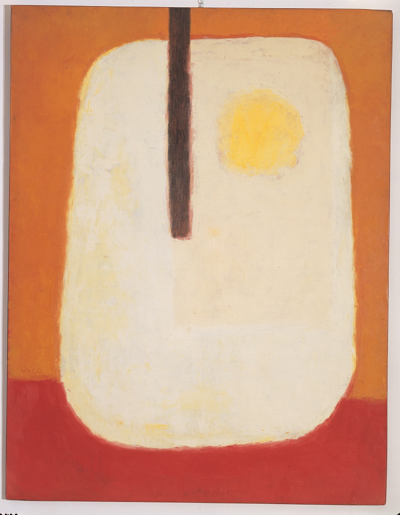 L’espressività astratta di lavori come Immagine Verde (1959), Colori nella luce e La mia estate, entrambi del 1960, o ancora Composizione (1964) e Presenza obliqua (1965), mostrano come il linguaggio di Valentino Vago sia eloquente nella sua sintesi cromatica e di come la sua pittura sia intimamente sacra ma allo stesso tempo potente.