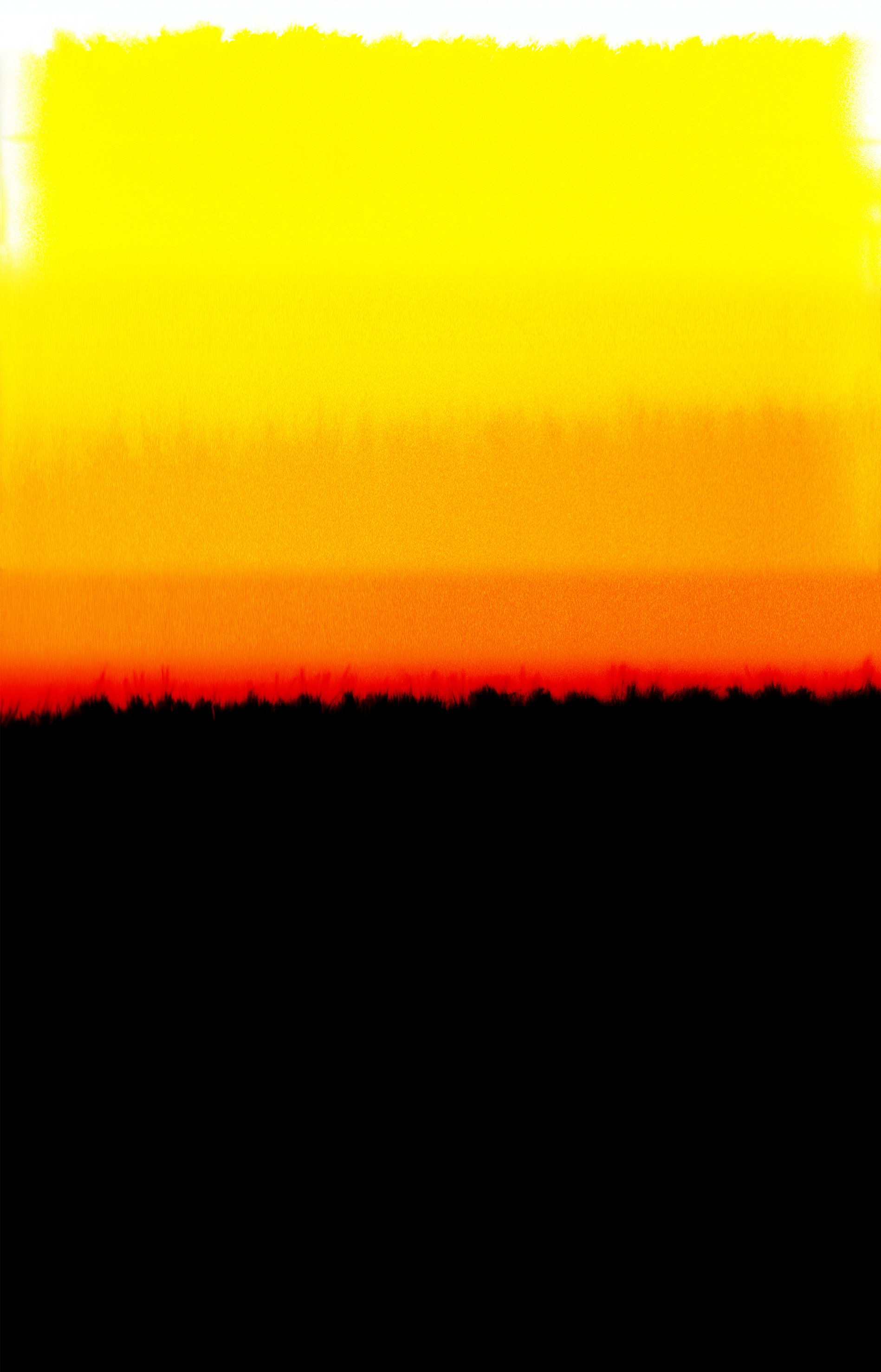 Il titolo della mostra, “Prima del Tempo”, sottolinea come le opere della serie Orizzonti siano immagini pre-fotografiche create dalla luce direttamente sul frammento iniziale della pellicola, prima che essa registri la prima immagine, e fuori dal controllo consapevole del fotografo. Queste esposizioni non intenzionali sono scritture di luce, immagini non ottiche che si manifestano sulla superficie foto-sensibile durante il processo di caricamento della macchina, e prima dell’inquadratura di alcun soggetto esterno, trasformandosi così in forme e linguaggio nella mente di chi le osserva. Gli Orizzonti sono Icone di Luce nate dall’intimo rapporto tra luce, tempo e materia.