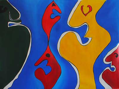 "Nelle mie opere sono raffigurati sempre profili suggeriti dalla mia immaginazione che, da ben definiti, vanno via dileguandosi. Cerco di dare ad un volto “umano”, una linea bizzarra quasi da caricatura, un processo di deformazione e d’astrazione, talvolta appena percettibile. “La realtà è deformata, manipolata, ricreata, ma non viene mai completamente eliminata...”. Volti come maschere, quelle che ognuno di noi indossa per mostrare una “faccia-ta” di sé, quella che più si adatta alle circostanze, alle apparenze. Le linee e i colori vivaci, si dispongono liberamente e sono lo specchio del mio mondo interiore. "