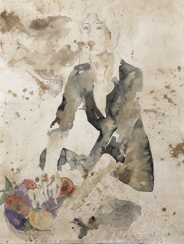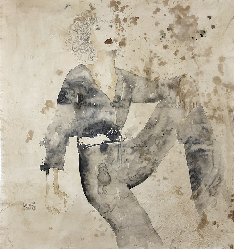 Le grandi tele, libere da intelaiature e realizzate con tutti elementi naturali - dalle colle, agli inchiostri e all'uso del caffè – rappresentano donne dall'aspetto quasi evanescente e libero che ripercorrono, con inaspettata forza, i momenti più importanti della loro esistenza.
