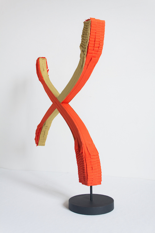 Partiture di un luogo immaginario, questo il titolo della mostra pensata appositamente da Talamonti per lo spazio museale, è espressione di un desiderio di controllo tecnico e di una razionalità resa sensibile in opere costruite con un’eleganza formale dalla partitura quasi architettonica. Attraverso un accurato lavoro di composizione e piegatura di materiali tessili di uso domestico - fettucce colorate da sartoria portate in equilibrio su tele di lino immacolate – l’artista realizza immagini astratte di rara eleganza, ormai lontane dalla dimensione vitale del quotidiano, da cui provengono, ma pronte a tornarvi.