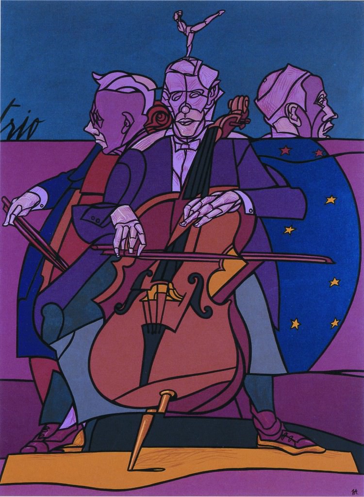 Evocazioni si sviluppa attraverso un percorso di circa 30 opere tra dipinti e disegni, sul tema della musica realizzate da Adami negli ultimi venticinque anni.