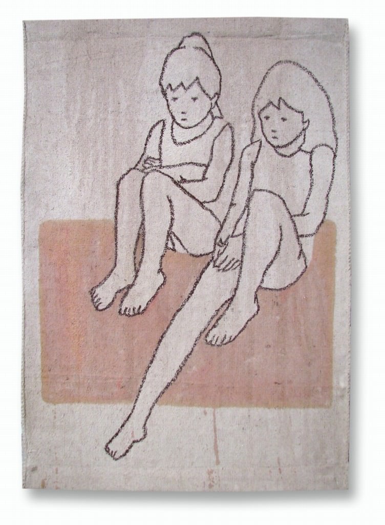 L’artista prosegue il suo percorso fatto di immagini essenziali che ripensano i temi degli affetti, della quotidianità e dei legami familiari, per la prima volta mettendo al centro dell’opera due soggetti. I wish I was special nasce da una riflessione sulla personalità e sul momento in cui essa si forma: le due protagoniste, ritratte con la tecnica minimale che caratterizza l’artista, dialogano fra di loro, mutano, sembrano fondersi l’una con l’altra per poi discostarsi nuovamente, mettendo lo spettatore nella posizione di decidere se siano due figure distinte o se si tratti invece di uno sdoppiamento della stessa persona. Un alter ego, un aspetto della propria personalità contro cui si inizia a lottare dal momento in cui l’infanzia lascia il posto alla pubertà, quando si avverte la consapevolezza dei propri limiti e si accentuano le proprie peculiarità perchè, come suggerisce il titolo, si vorrebbe essere speciali. Nessun elemento di riconoscimento spazio-temporale guida l’osservatore, solo due esili figure affrescate su juta, stilizzate su carta o plasmate nei bassorilievi in cemento armato, ultima evoluzione stilistica di Berruti.